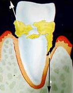 sichtbaren Zahnstein innerhalb einer Zahnfleischtasche (Konkremente)